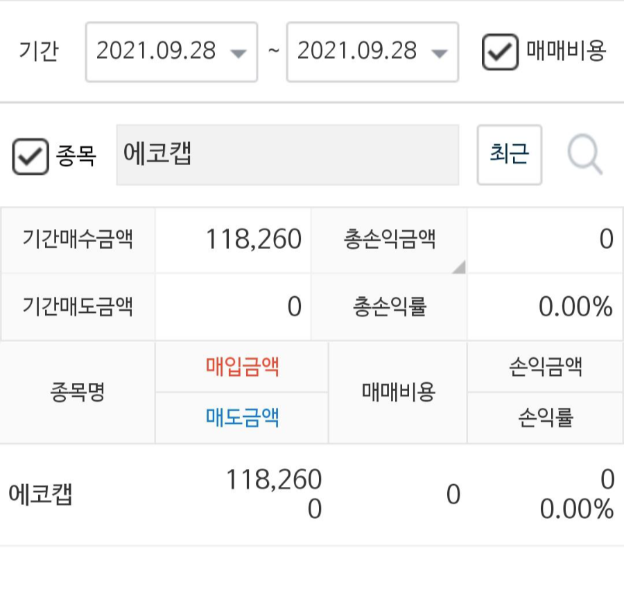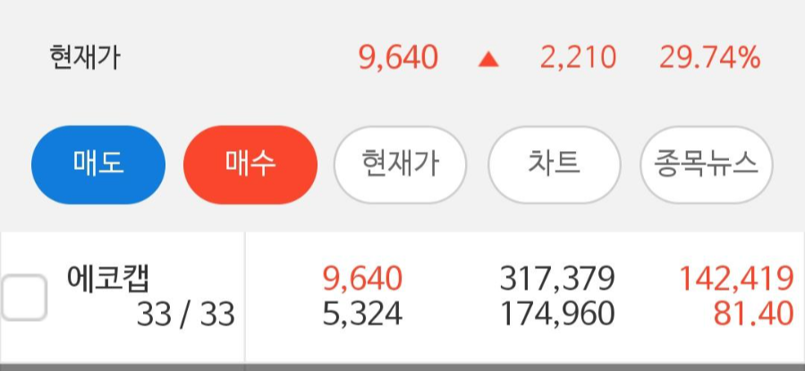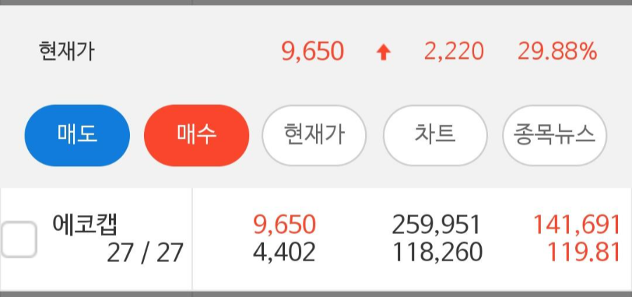 그렇게 몇 일간 에코캡을 관심 목록에 넣어두었다가, 이번 화요일 에코캡을 10만 원 치 첫 매수를 시작하였다.